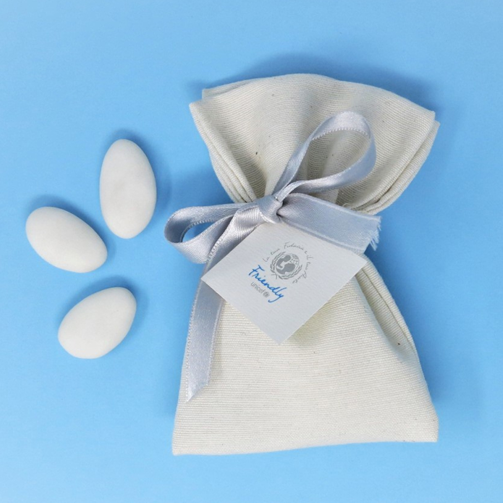 SACCHETTINO PORTA CONFETTI PANNA CON NASTRINO IN RASO